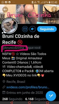 AVISO: estou com problemas pra postar aqui nessa plataforma. eles estão bloqueando meus vídeos e fora que o site é lento pra colocar os vídeos. É muitaaaa frescura aqui e por isso me desmotivei a postar. Estou postando em outra plataforma que começa com PRI e termina com VACY. Tenho mais de 300 vídeos lá! Procura meu nome no Google Bruni Campelo e você vai achar Oie, me chamo Bruni Campelo! Moro em Recife e aqui eu gravo minhas brincadeiras, meus fetiches e festinhas. Tudo de maneira amadora. Sou uma bonequinha trans muito sigilosa, discreta, feminina e obediente.Mostrar más